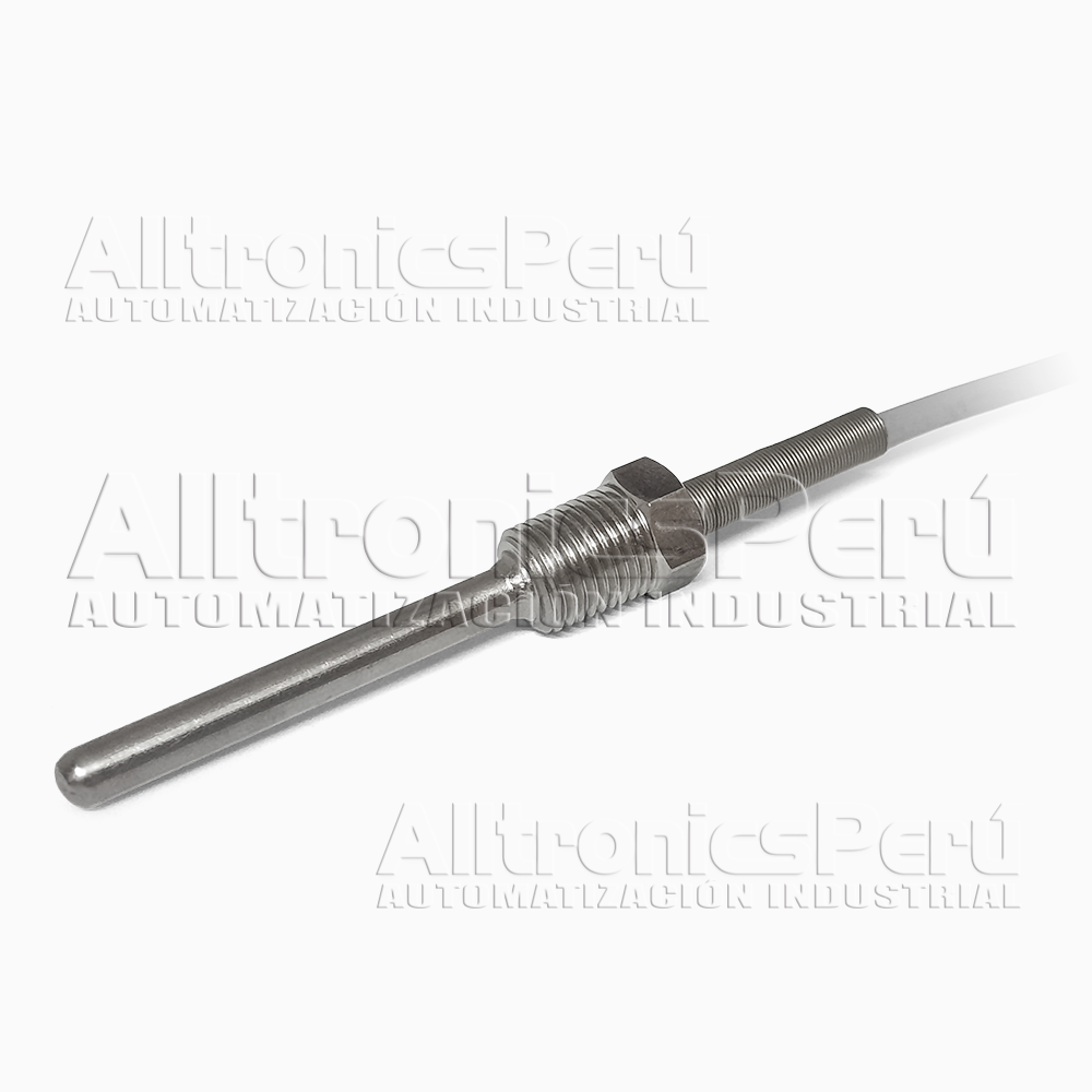 Termorresistencia PT100. Tamaño: Ø6 mm x 150 mm. Acero inoxidable SS304+conexión rosca 1/4" NPT. Cable siliconado de 3 Mts.